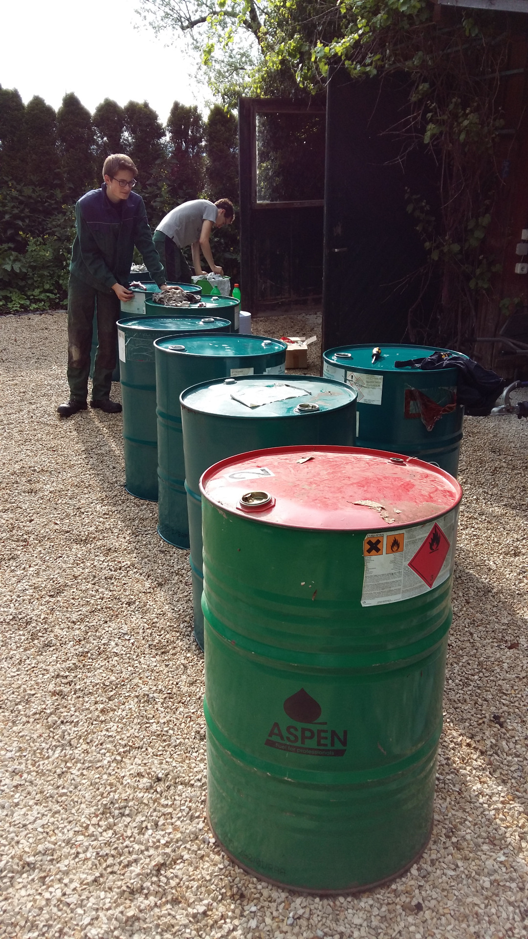Die Ölfässer wurden abgeholt und von innen und außen gründlich mit Spiritus und Benzin gereinigt.