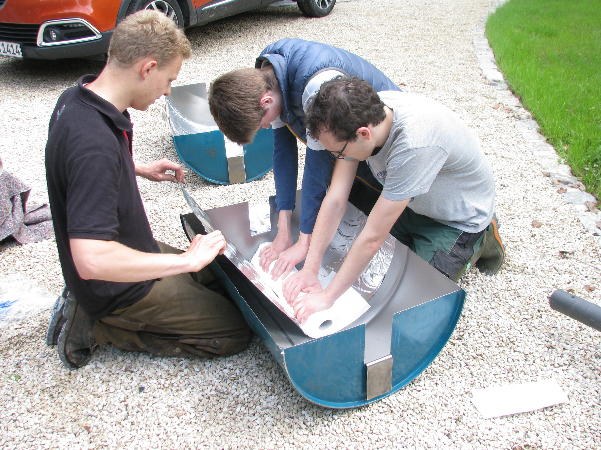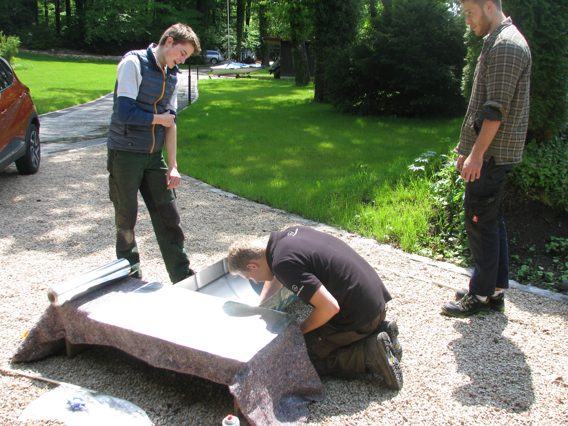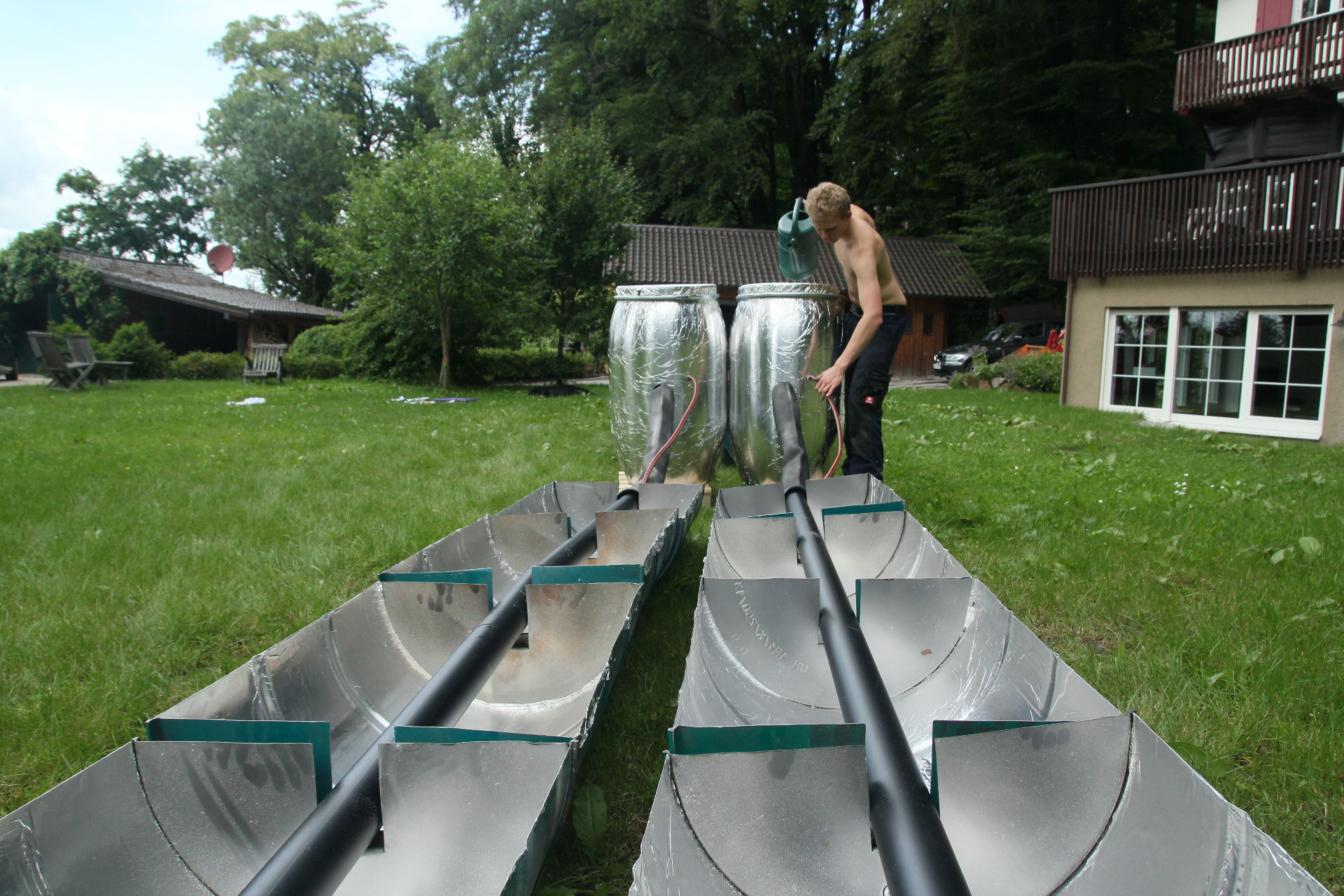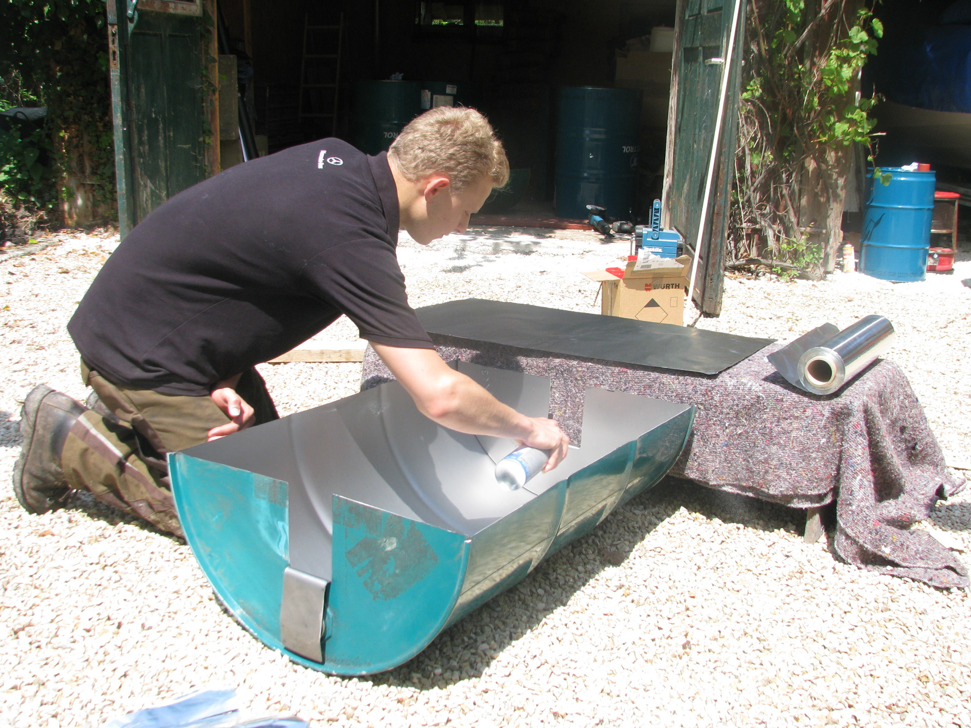 Damit unser Edelstahlrohr später mehr Sonnenlicht absorbieren kann, beklebten wir diese mit schwarzer Autofolie.