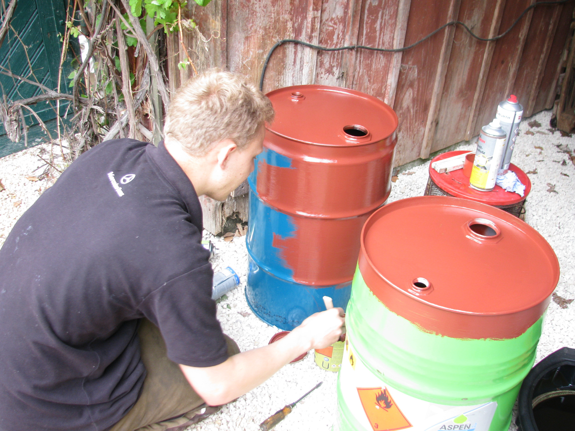 Die Ölfässer wurden abgeholt und von innen und außen gründlich mit Spiritus und Benzin gereinigt.